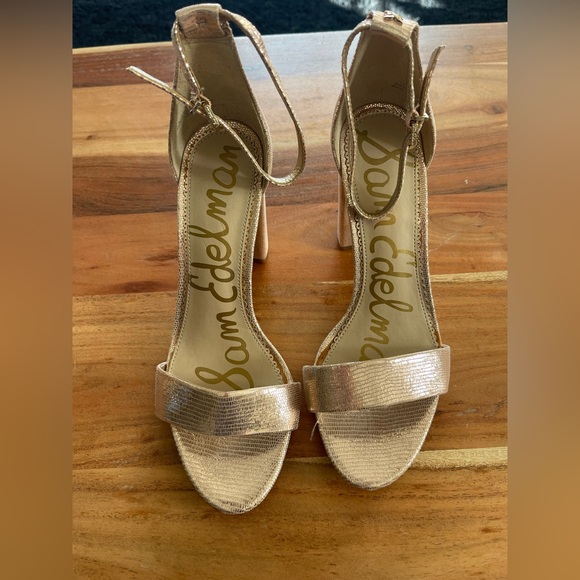 Chic metallic gold heels with ankle strap. Elevate your look effortlessly. Never worn. Adorable.