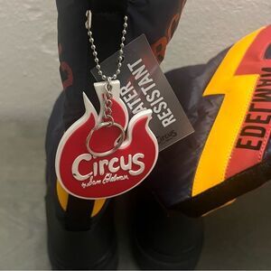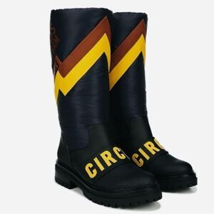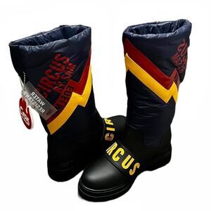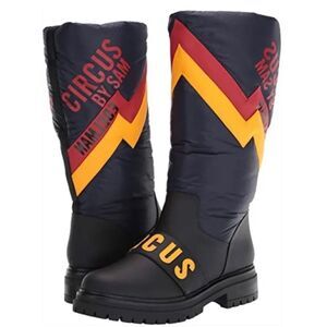 Sam Edelman Mid-Calf Flat Puffer Boots Womens Sz 6.5 Navy Yellow Water Resistant