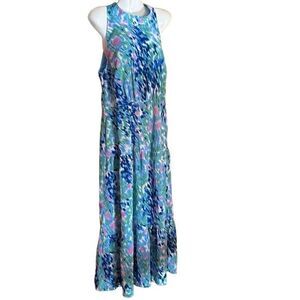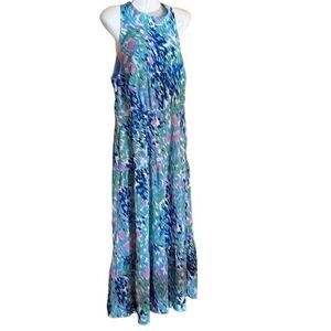 Sam Edelman Women's Maxi Dress Brush Stroke Garden High Neck Flowy Lined Top