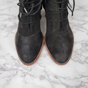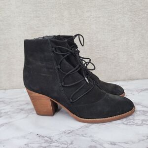 Sam Edelman Millard Black Suede Ankle Boots Booties Lace Up Block Heel