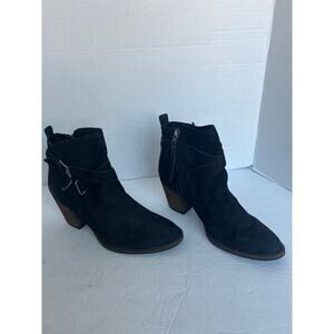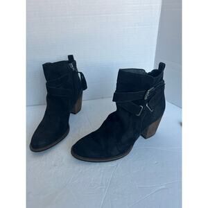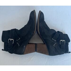 Sam Edelman Morris Black Leather Buckling Strap Boho Western Ankle Boots Sz 8M