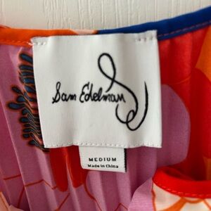 Vibrant floral Sam Edelman pleated midi dress with a mix of red, blue, green, and cream. Perfect for a bold statement.excellent condition. 17” pit to pit, 49” shoulder to hem