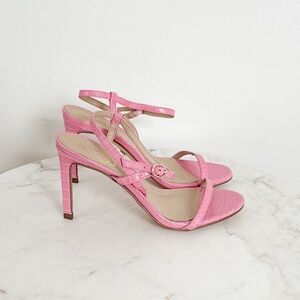 Sam Edelman NEW Doran Strappy Heeled Sandal in Pink Croc Print Size 5.5
