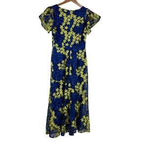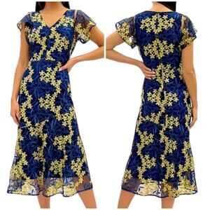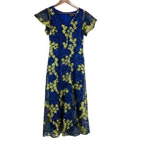 Sam Edelman NWT Embroidered Midi Dress Size 0 V-neck Cutout Shoulder Cobalt Blue