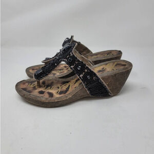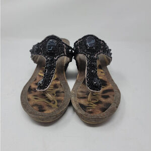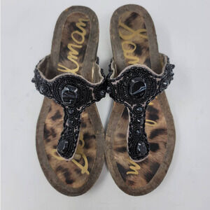 Sam Edelman Nara Sandal Size 7.5 Beaded Cork Wedge Heel Sandals Pewter Black