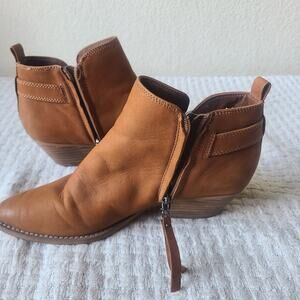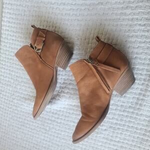 Sam Edelman Neena Leather Point-Toe Ankle Boots Women's Size 8. Preowned. Minor wear. Western profile of these point-toe booties. Leather upper. Point toe. Side zip. Side buckle strap. Back logo embellishment. Lined. Padded insole. Synthetic sole. Measurements Included In Pictures. Good Condition. Smoke Free Home. Offers Welcome.