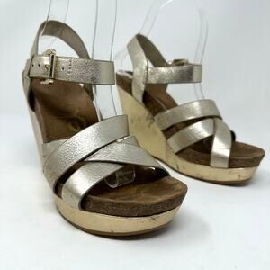 Sam Edelman Nelson Metallic Leather Ankle Strap Wedge Sandals