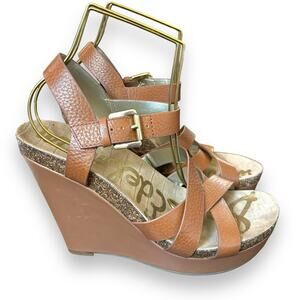 Sam Edelman Nelson Platform Leather Wedges Size 10 Tan Brown Camel