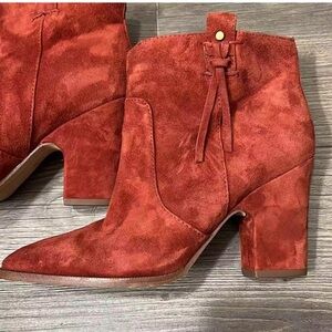 Sam Edelman Niomi Suede Western boho Booties In Red Paprika Size 7 preloved