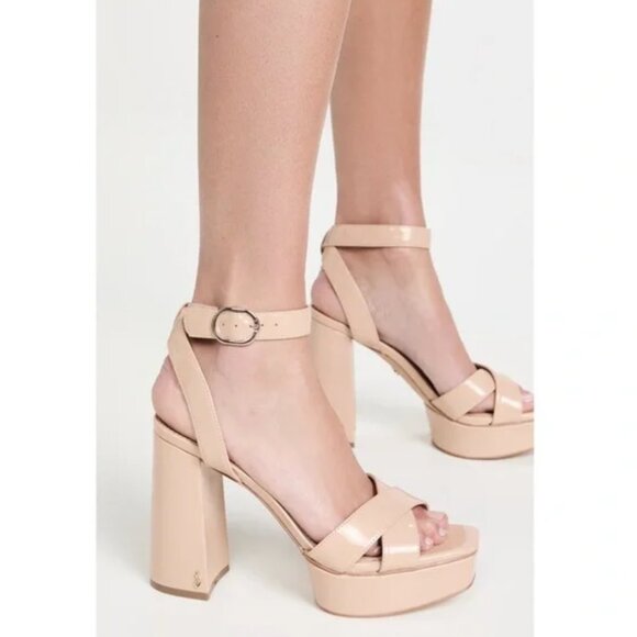 Crisscross straps Block heel Buckle ankle strap Synthetic sole Platform profile