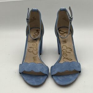 Sam Edelman ODILA Ankle Wrap Sandals Suede Blue Leather Block Heel Size 7.5 EUC