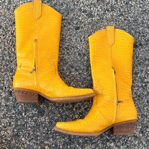 Sam Edelman Oakland Yellow Crocodile Embossed Leather Cowboy Boots Size 9