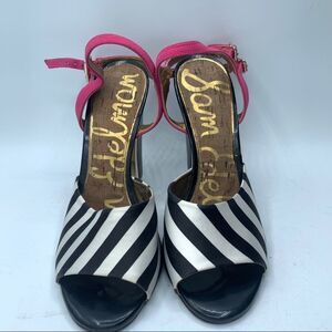 -Features 4 1/2" block heel, adjustable suede ankle straps, and