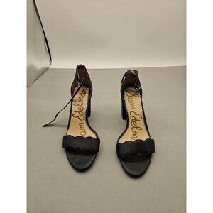 Sam Edelman Odila Block Heel Scalloped Sandals Black Suede US 6.5M