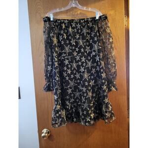 Sam Edelman Off The Shoulder Gold Silver Sparkle Star Mesh Sheer Dress NWT 14