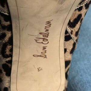 Sam Edelman Olette sand animal print leopard fur ankle boots heels Sz 8 1/2