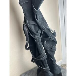 Sam Edelman Over The Knee Boots Women's Size 9.5 Black Suede Strappy Heeled Boot