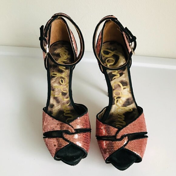 Sam Edelman PAISLEY Sequin Ankle Strap Stilleto Platform - Rose Gold Pink Size 7