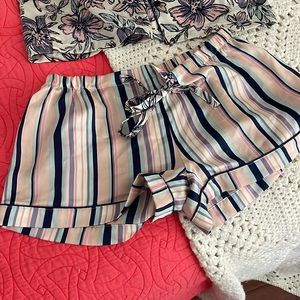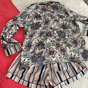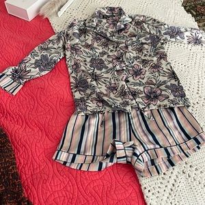 Silk feel (polyester) shorts with long sleeved button up style PJ top