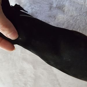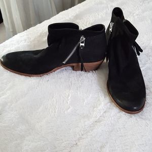 Sz8 suede leather booties. Super cute!! Double zippers with tassel details. Some distressing detail on toes and heels.