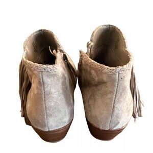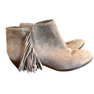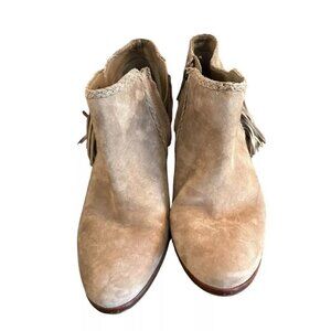 Sam Edelman Paige Booties Fringe Ankle Boots Beige Suede Leather Womens Sz 8.5
