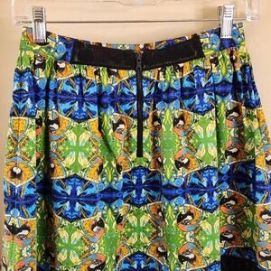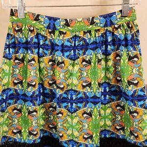 Sam Edelman vibrant parrot a-line skirt with crochet lace panels. Zipper back closure. Size 2.