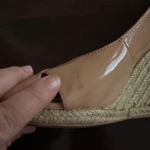 Sam Edelman Patent Leather Espadrille Wedges. Slight defect on inside toe of right shoe, as pictured. Lightly worn.