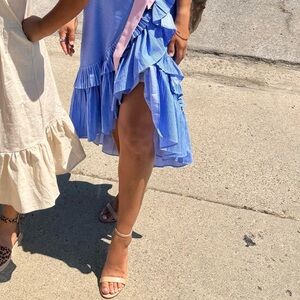 I wore these heels once, and the party was in a really cool location, but the parking lot was hell to get through, which is why the bottoms of the heels and the back of the heel is pretty rough looking. Ankle strap also shows the usual flaw of flaking, even after 1 wear, it’s crazy how cheap they make these shoes these days. I have pictures of pretty much every angle and any little flaw I could see. Comes with the box.
