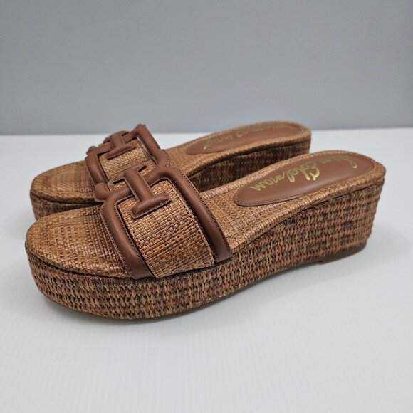 Sam Edelman Pauleena Platform Sandal Womens 8 Brown Woven Raffia Slide NEW