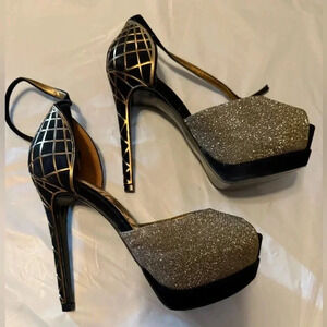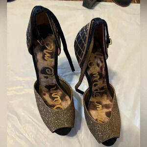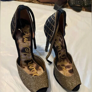 Sam Edelman Paulette Heel Gold Black Posh peep-toe silhouette pump Sparkle 6