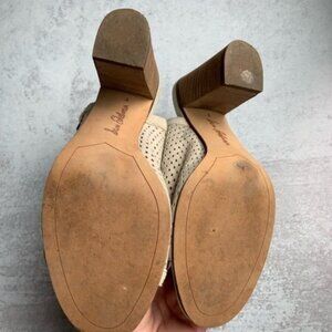Sam Edelman Peep Toe Perforated Leather Heels Caged Ankle in Cream