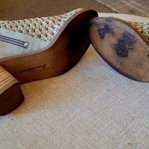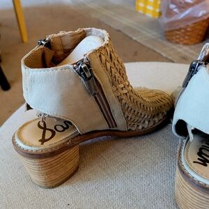 Sam Edelman Peep Toe Sandal Booties with 2.5" Heel Taupe Woven Leather Size 7.5