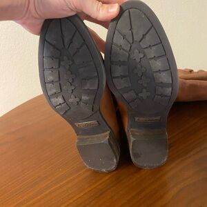 Overall some natural wear that adds to the patina of the leather. Inside of left boot has some pealing, as pictured. Whiskey leather color.