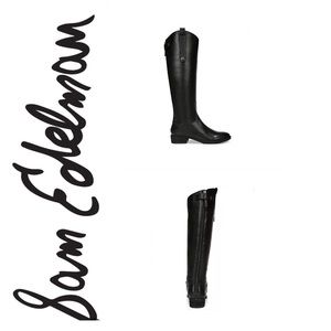 Blending a modern asymmetrical topline with classic equestrian-inspired lines, the Penny riding boots from Sam Edelman elevate any look in supple leather.