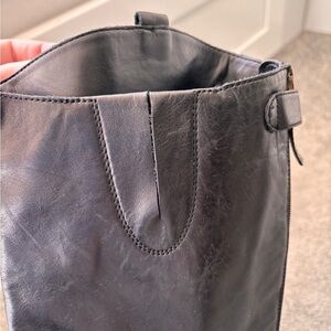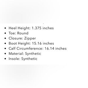 Loved but very well taken care of Penny Riding boot! These are medium width and won’t fit a wider calf. They do have the stretch piece on top photod. A few scuffs which you can see but the inside is like new. I have a box (not correct) if you would like just let me know. Small block heel