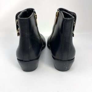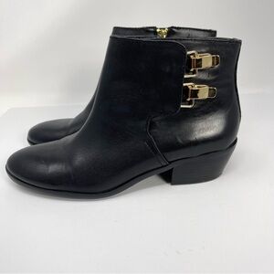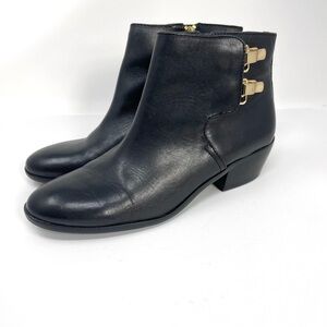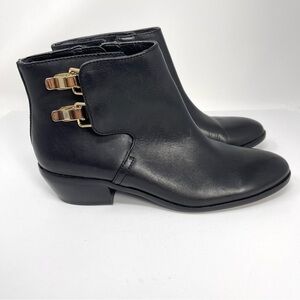 Sam Edelman Peter Black Leather Booties. Gold buckle details. Inner side zipper. 1.75” heel height. In excellent conditition. Size 7.5.