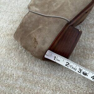 Tan / taupe suede ankle boots booties chunky heel shoes.