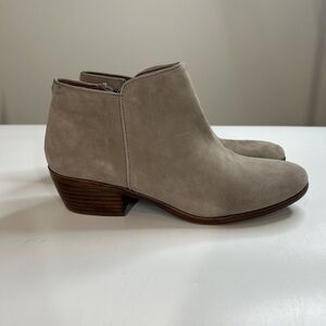 Sam Edelman Petty Suede Heeled Ankle Bootie Womens 9 M Putty Gray Beige