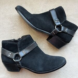 Sam Edelman Phoenix Black Suede Ankle Boot Bootie Side Zip Western Women 6.5