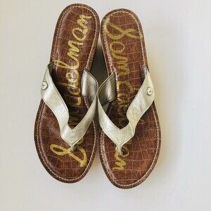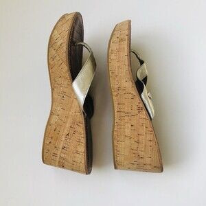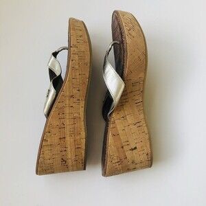 Sam Edelman Platform Sandals Womens 8.5 Silver Cork Leather Wedge Gently Used wg PLEASE TAKE A LOOK AT MY PHOTOS FOR CLOSE EXAMINATION