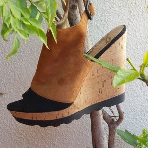 Gorgeous Sam Edelman Platforms in Suede, medium brown and black combination.
