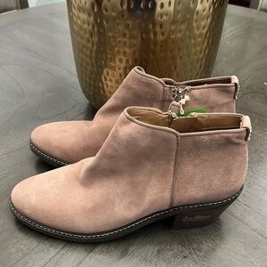 Slip on style ankle bootie with side zip-closure.