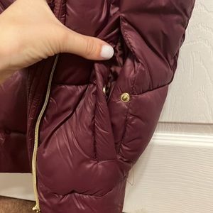 Sam Edelman Puffer vest with side zip. Color is burgundy or wine with gold hardware. Two snap pockets