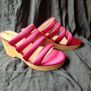 Sam Edelman Puffy Satin Pink Fuschia Strappy Wedge Espadrille Sandals Size 7.5