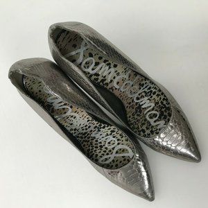 Sam Edelman pumps heels sadi snakeskin scallop silver metallic point toe Sz 10.