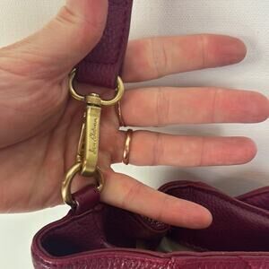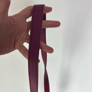 Gently Used Sam Edelman Crossbody Bag. Exterior is 100% genuine leather with man made trim. Nice shade of red with gold accents for the buttons and etched Sam Edelman text logo. One exterior pocket. Several interior pockets including some zippered ones. Cute purse!