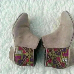 Sam Edelman Putnam Saddle Aztec Gray Ankle Suede Stacked Booties Boots