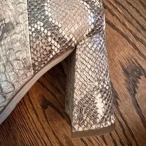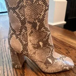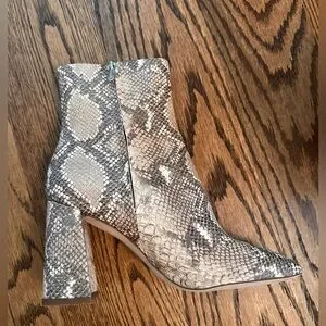 Sam Edelman Python-print booties, Size 8.5. Stacked heel, inner ankle zip, squarish toe. Comfortable and easy to style! New condition.