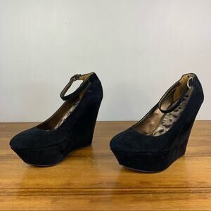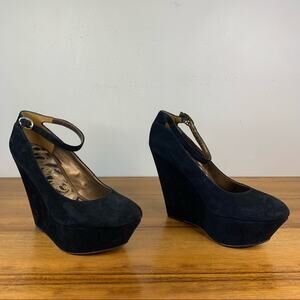Sam Edelman Quinn Velvet Ankle Strap Platform Wedge Size 6