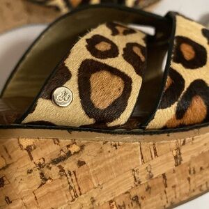 Sam Edelman RAYNERE Dyed horse Hair Wedges sandals Leopard Print cushion Size 10